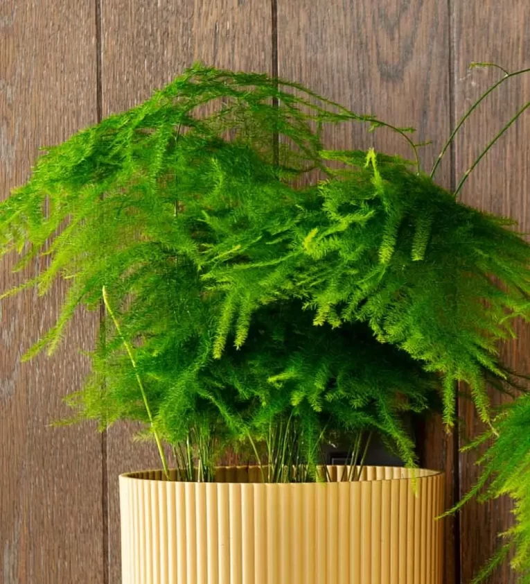 An elegant houseplant, the bright green feathery leaves have an almost wispy quality. These plants work equally well in a pot or in a hanging basket. The plant is initially bushy, but the stems become slenderer as the plant matures and form vines. This plant is native to South and East Africa.