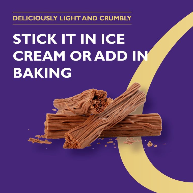 Rediscover the iconic Cadbury Flake bar. Its crumbliest, flakiest chocolate texture ensures a melt-in-the-mouth experience. The way we make our Cadbury milk chocolate Flake so deliciously light and crumbly has been a guarded secret for years. Stick it in your ice cream for the Flake 99 classic or use for your culinary experiments. Made with sustainably sourced cocoa. Vegetarian friendly.